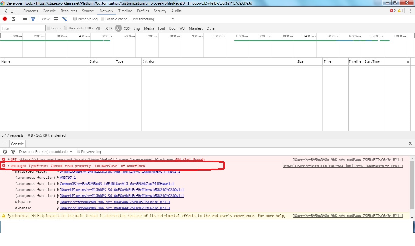"Uncaught TypeError: Cannot read property 'toLowerCase' of undefined" error can be seen in JS consol.
