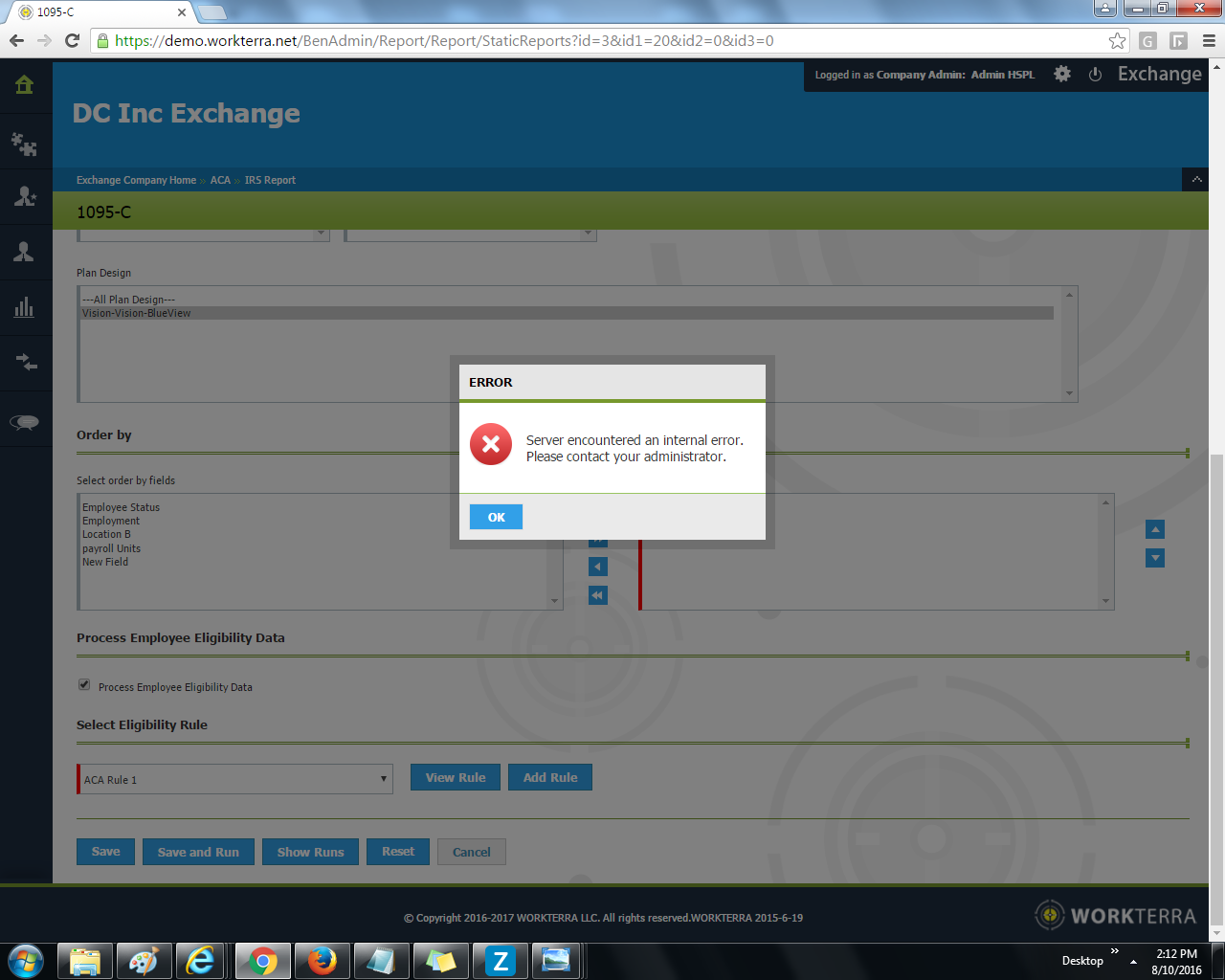 6. Server error observed while viewing Employee Plan Eligibility Report. PFA screen 'shot Employee Plan Eligibility Report_Server error.png' - Amnesh Goel