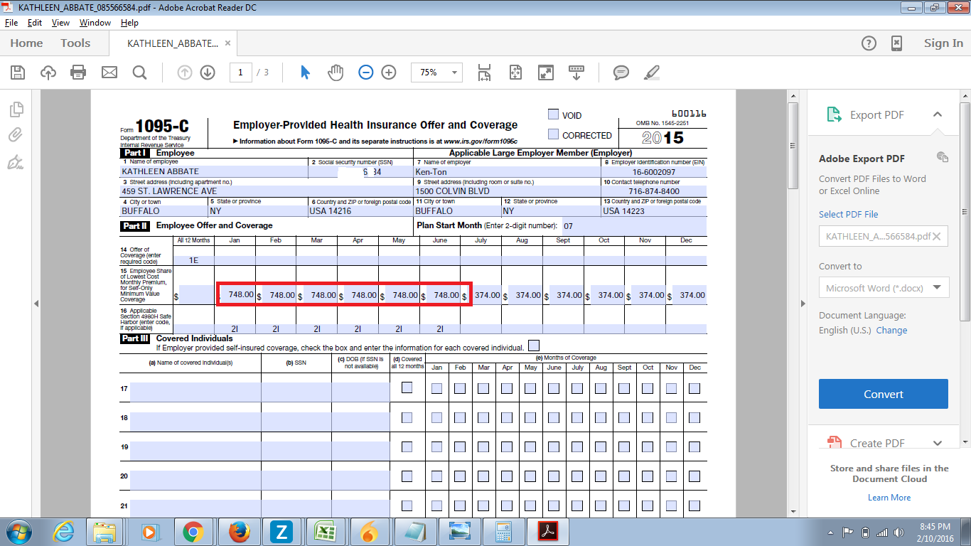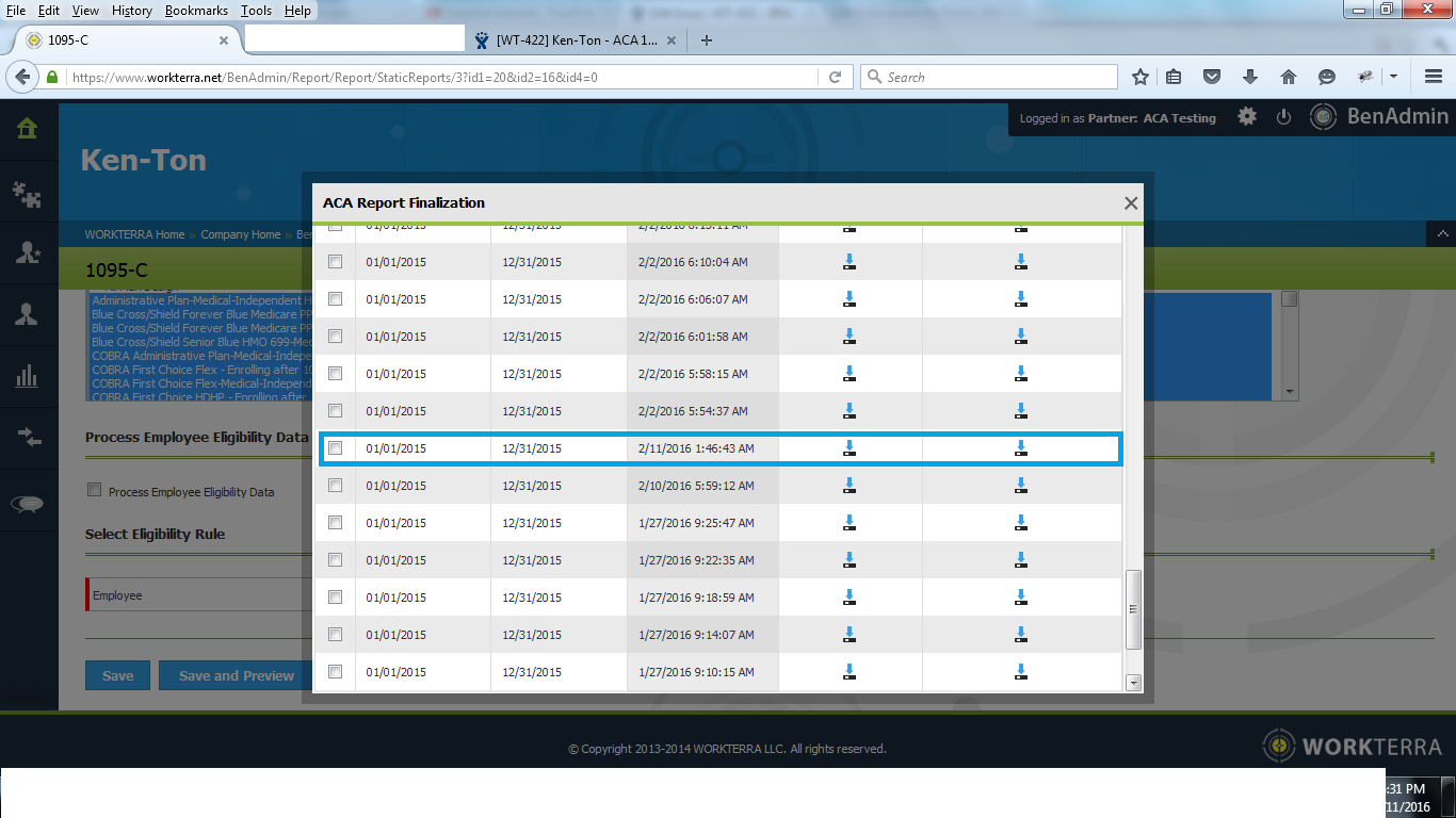 Ken Ton is ready to start running their forms for 1095-1. They have already setup their ACA customization in the system and they do have historical data. Can you please let me know if anything else is needed for this group and when their ACA forms will be ready?