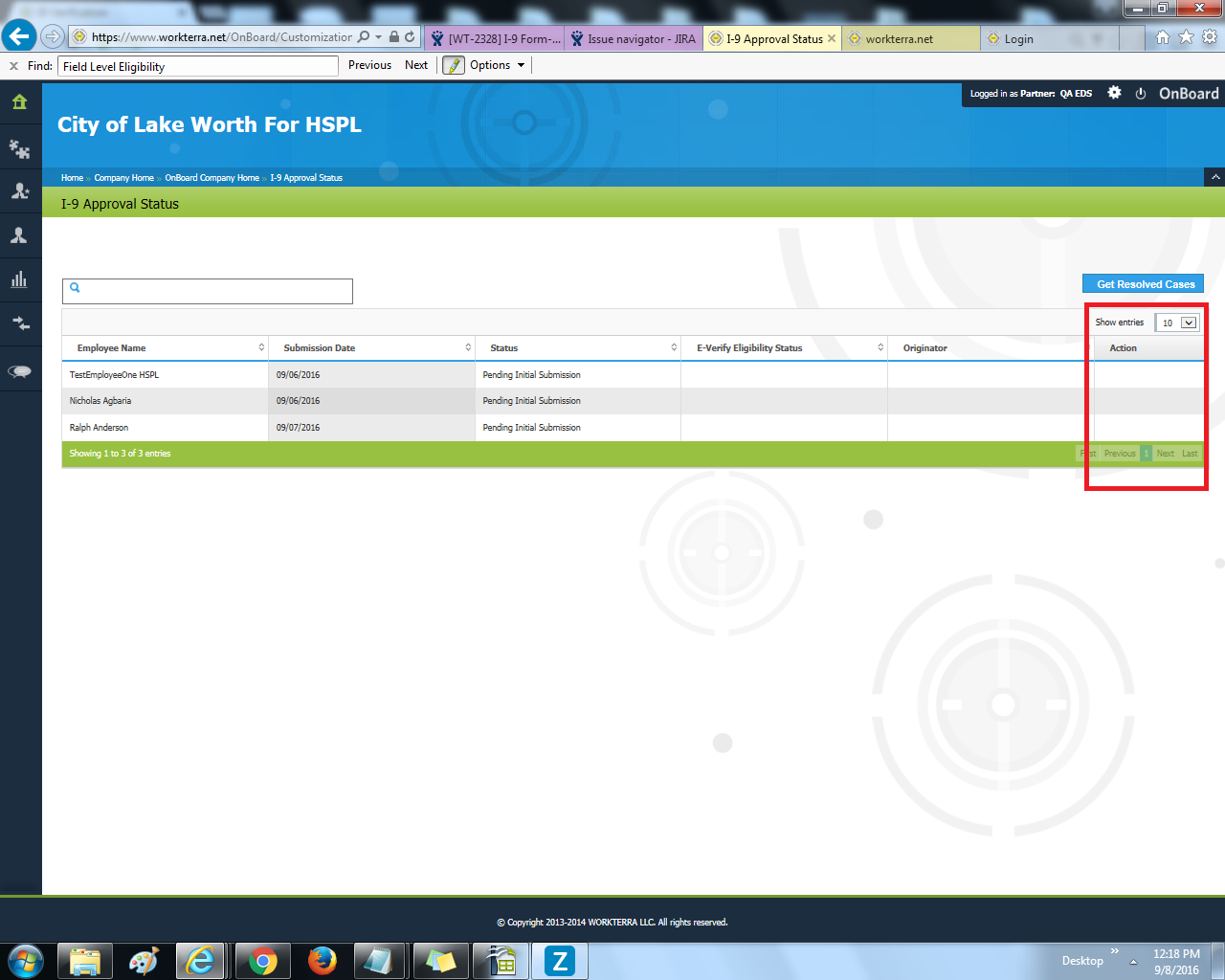 Below issues observed on Production while testing with company City of Lake worth for HSPL,