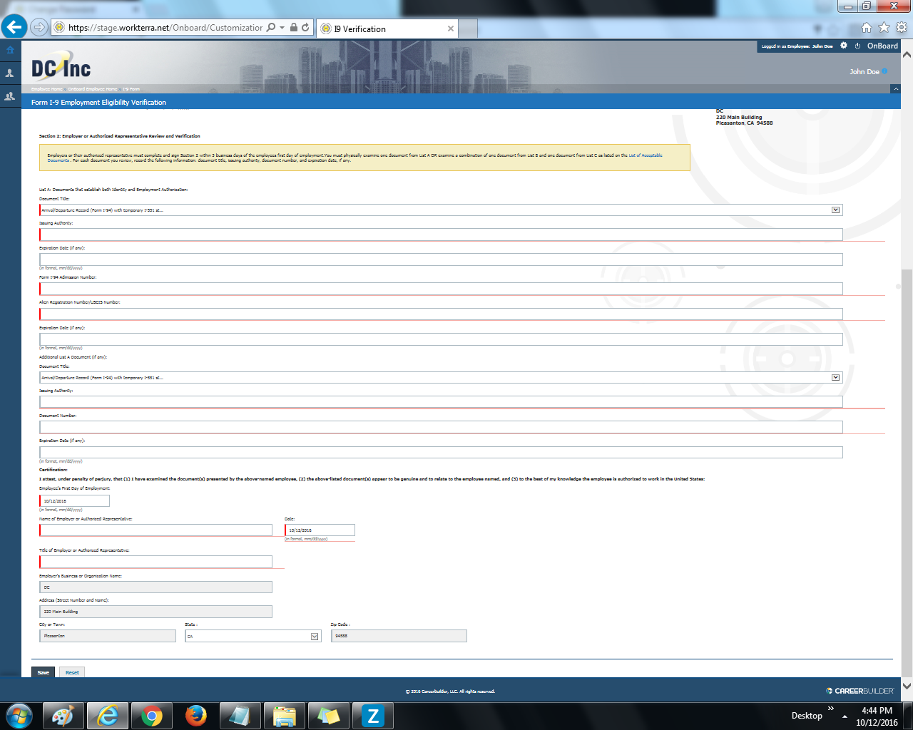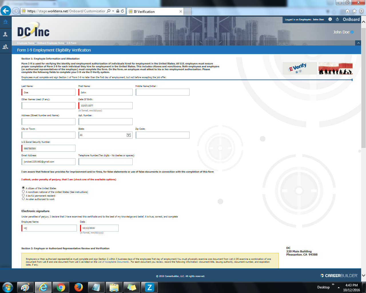 After the flow, when employee selects I-9 form from menu, all sections are displayed to him.
