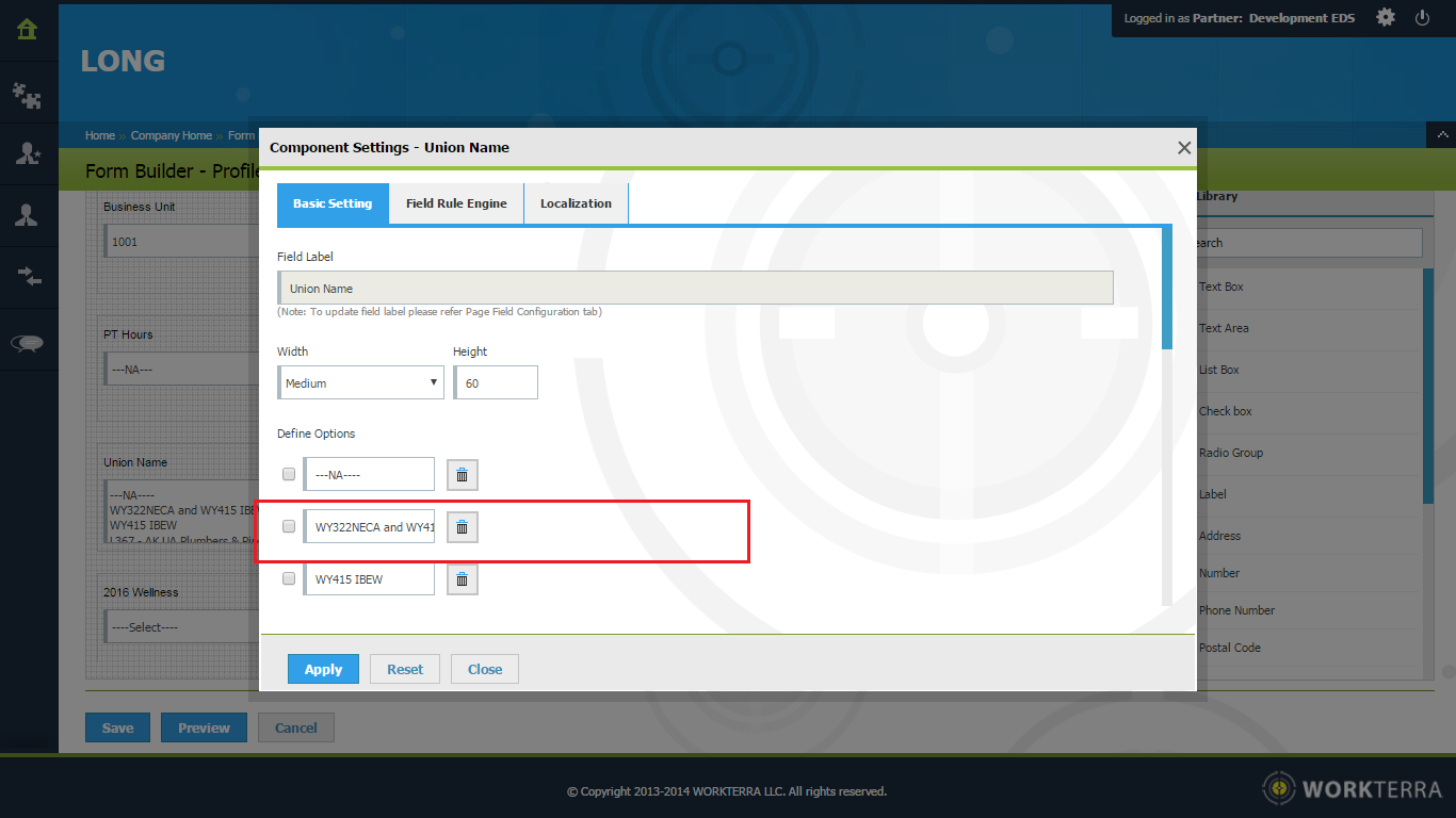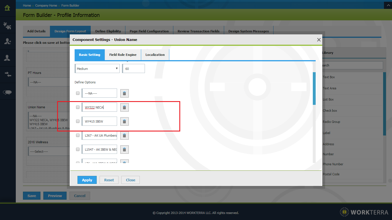 Can we please update the Union Name from "WY322NECA, WY415 IBEW" to "WY322NECA and WY415 IBEW"? EDI cannot load data due to the comma in the name. Client is going live in a couple of days.