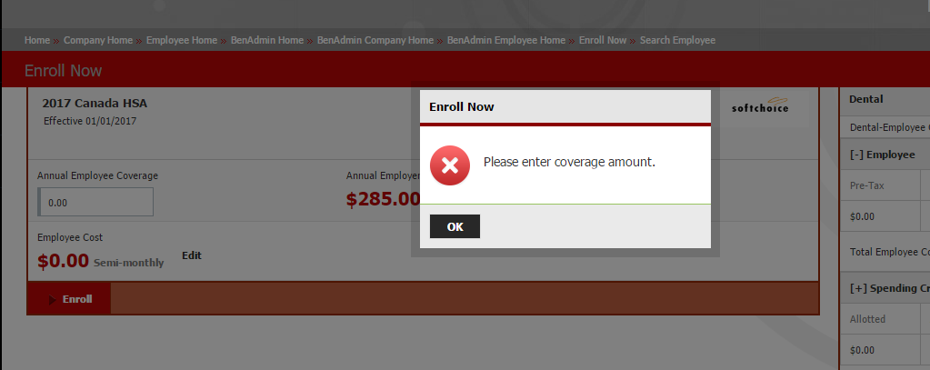 Currently: set up to not allow waiving and set to mandate coverage based on family demographics. UPDATE: THE EMPLOYEE SHOULD NOT BE ABLE TO WAIVE COVERAGE. DENTAL SHOULD DEFAULT TO EMPLOYEE ONLY TIER BUT SHOULD BE ABLE TO BE WAIVED. HSA AMOUNT SHOULD BE BASED ON MEDICAL TIER.