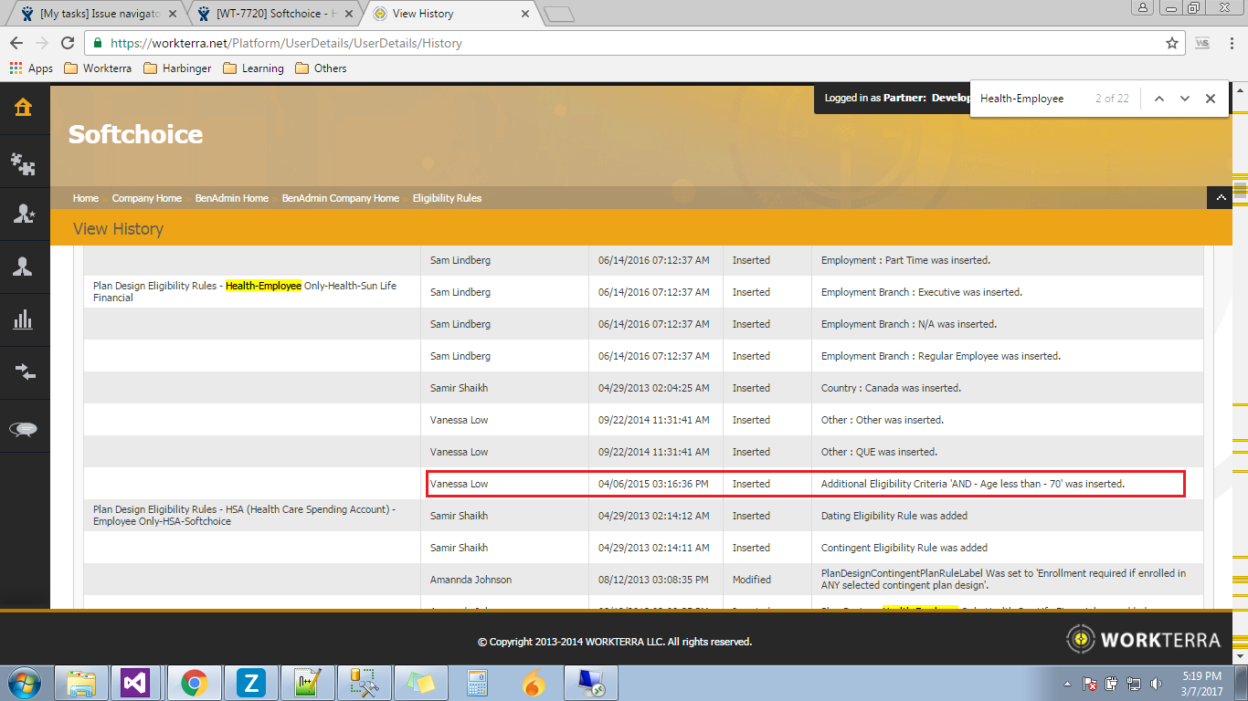There is also a ticket for issues with QEs leading to terminated benefits. WT-7182 explains that if someone is enrolled in an HSA for both 2016 and 2017 and they had a 2016 QE, it dropped the 2017 HSA. This is noted for JE Dunn in the ticket and I’ve asked them to review Softchoice for the same issues, as they have brought up a couple of problems with QEs that may or may not be related.