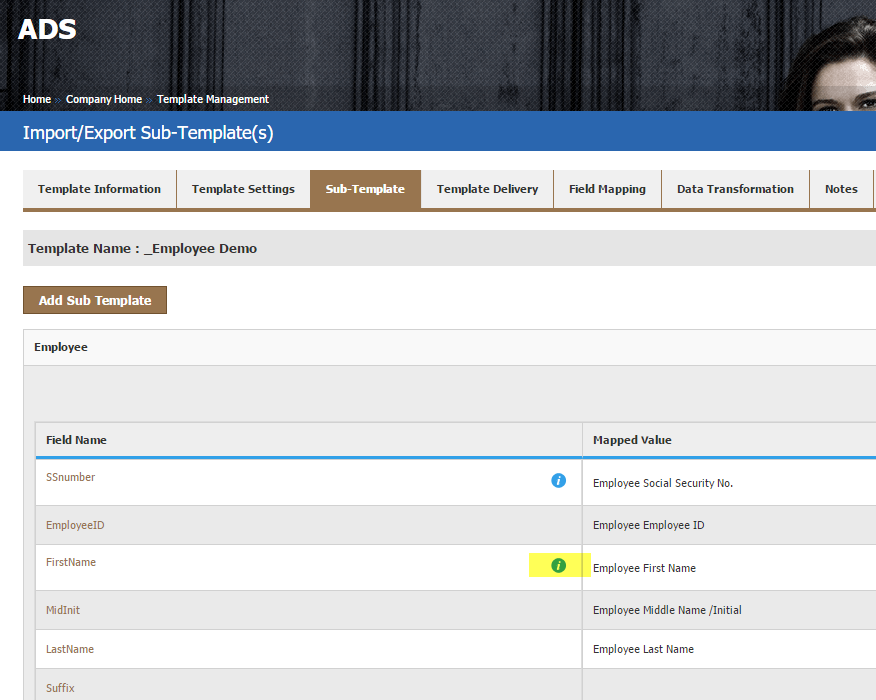 Show informative icon on sub-template fields if any field level attribute applied.