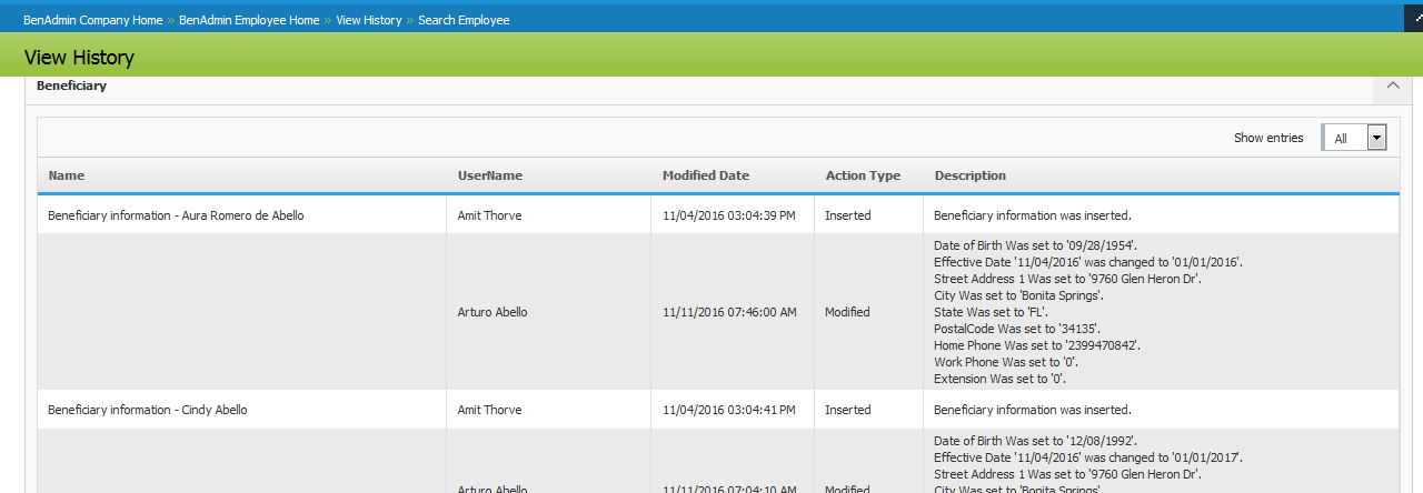 We can successfully view other history of EE like demographics, dependent etc (Refer screen shot view history 3)