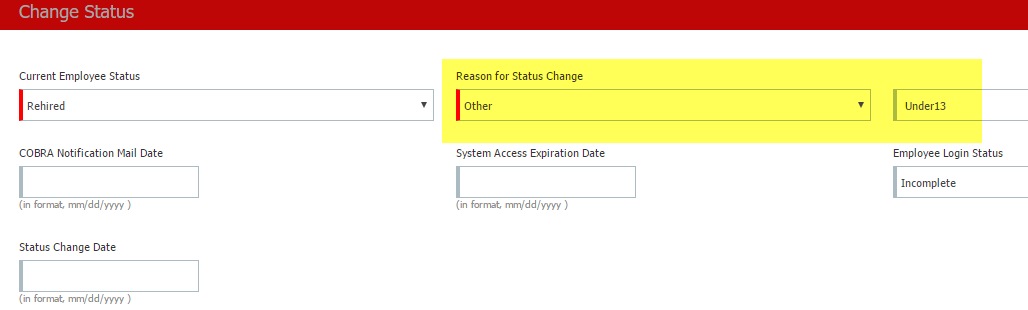 For the Rehires 1 and 2, I have created rules that are driven off of the "Other" status within the "Change Status" section. These rules are only for Rehire status. Please see screenshot: