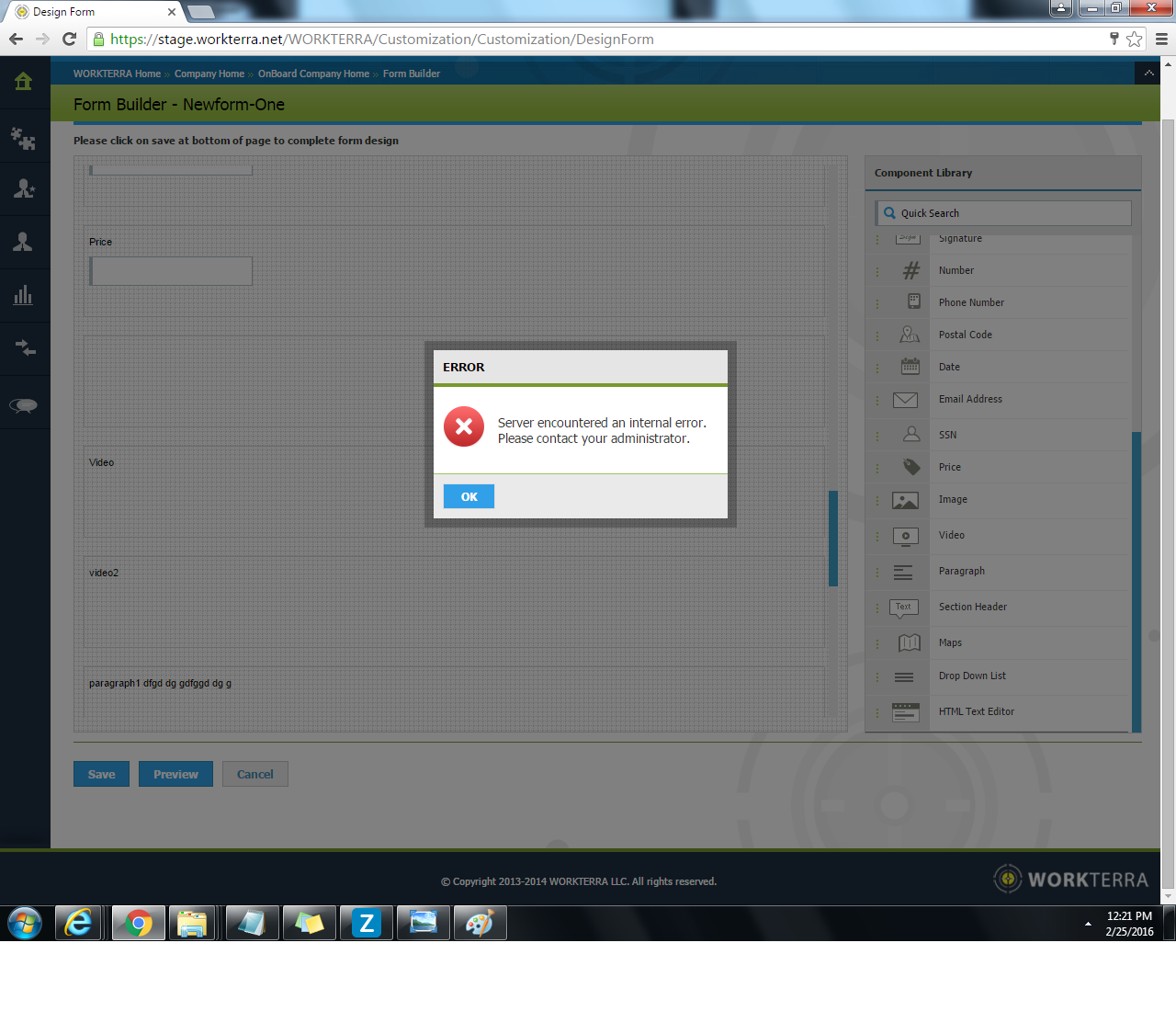 In Company El Camino Hospital For HSPL, server Error occurred on deleting a component in form builder from settings. Error log as below