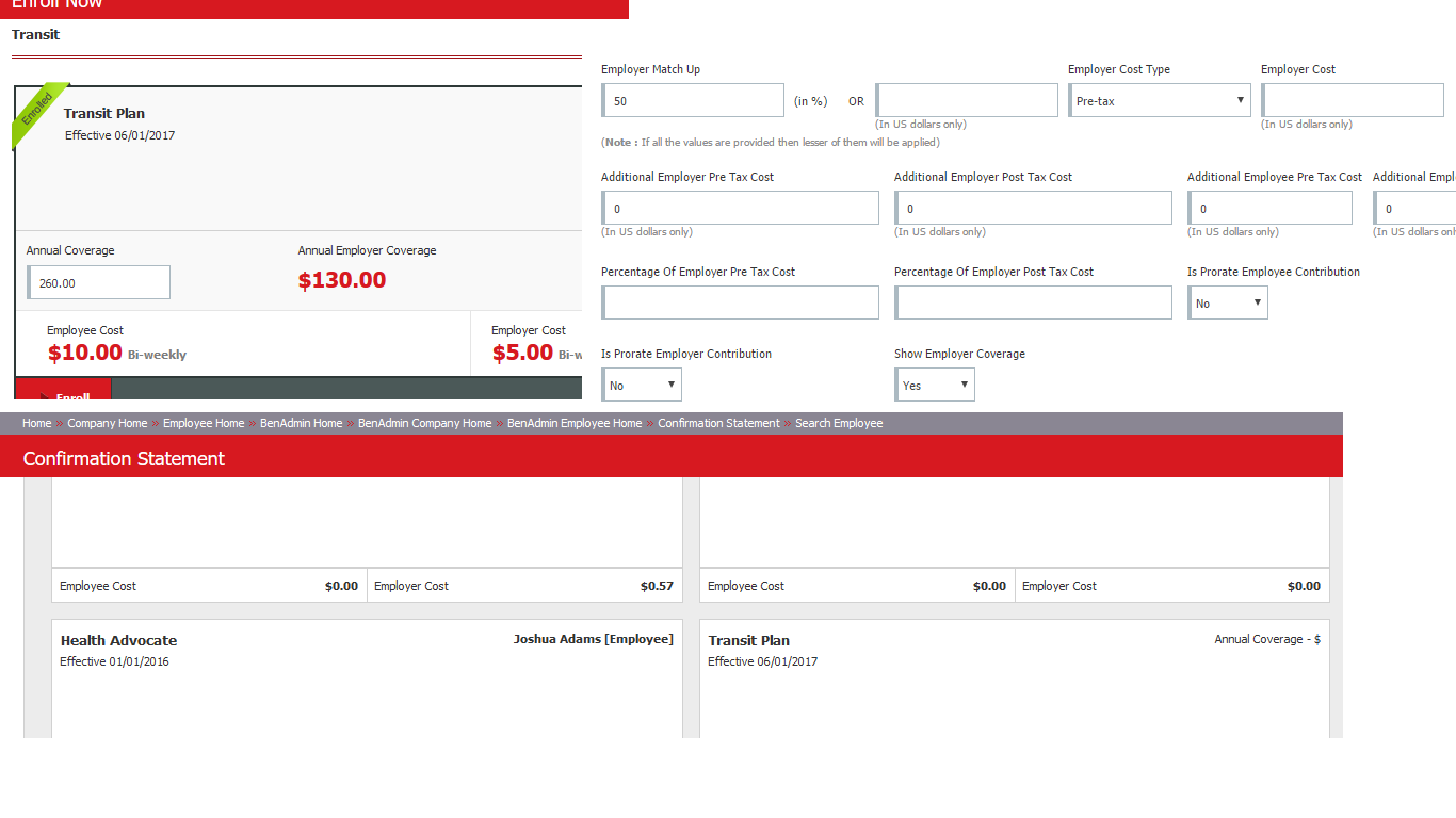 Like the way system shows employee and employer coverage on view enrollment summary - same is not shown on the confirmation statement