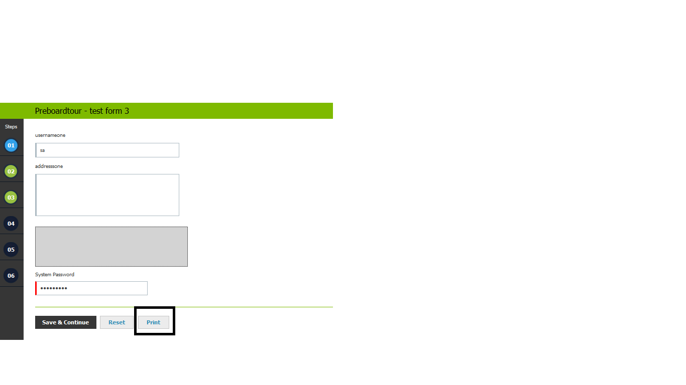 WT-1228 Ability to Print Form : All form elements are not visible in print output.