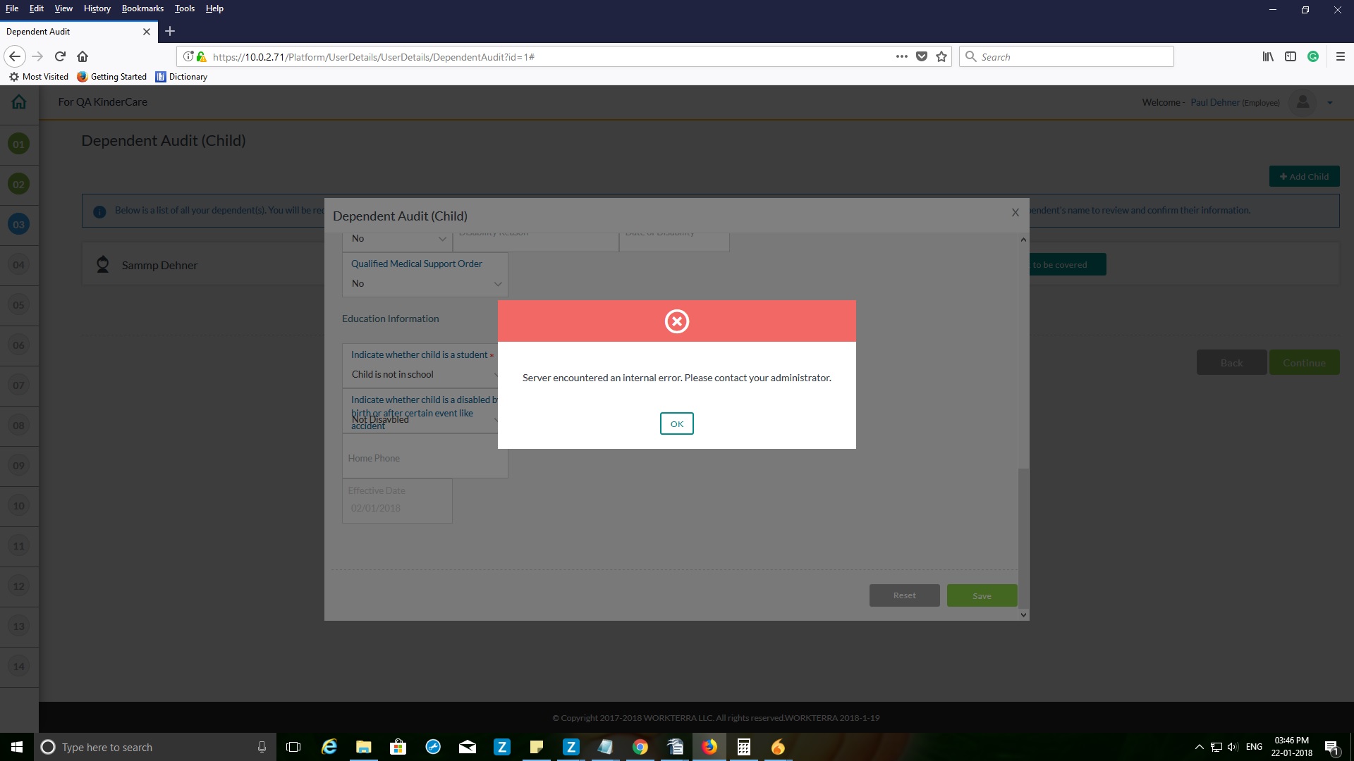GBAPS- Getting server error on "Dependent life warning" additional formNF-5748